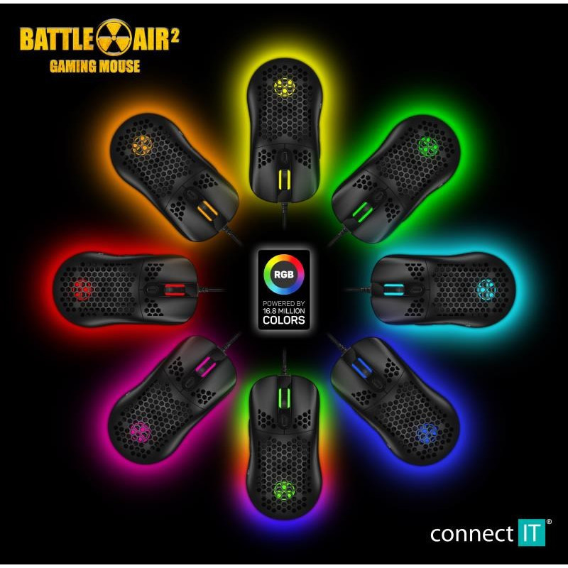 Kromě běžných funkcí je tato myš unikátní svojí odlehčenou konstrukcí. Díky perforaci těla myši a tlačítek speciálním hexagonovým tvarem, kterým došlo ke snížení váhy myši o 50%. Tento typ perforace zajistí maximální grip a stabilitu při dlouhodobém hraní. K této myši je dodáván software ke stažení zcela zdarma na stránkách www.connectit-europe.com. Samozřejmostí je u této série prémiový oplet přívodního kabelu a pozlacený USB konektor.