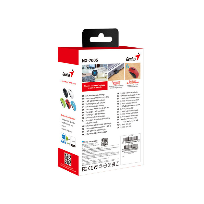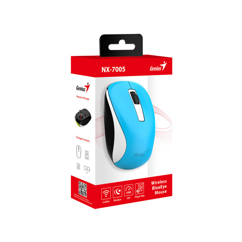 Bezdrátová myš Genius NX-7005 se snímačem BlueEye, který dovolí bezproblémové použití na jakémkoliv povrchu.