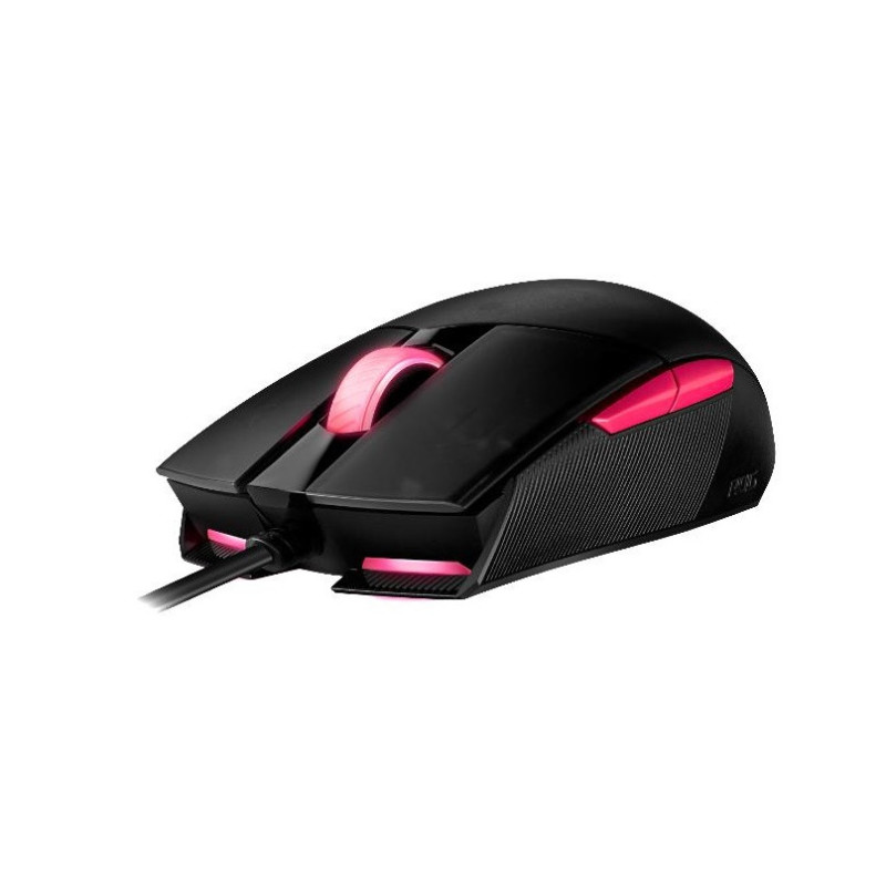 ROG Strix Impact II Electro Punk je oboustranná, ergonomická herní myš s optickým senzorem 6 200 dpi, lehkým designem a osvětlením Aura Sync RGB