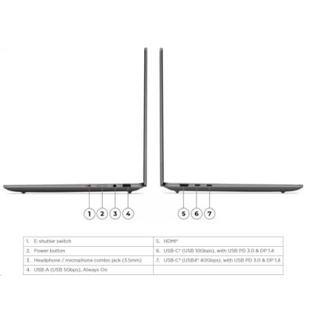 * 1x USB-C® (Thunderbolt™ 4/USB4® 40Gb/s), s USB PD 3.0 a DisplayPort™ 1.4