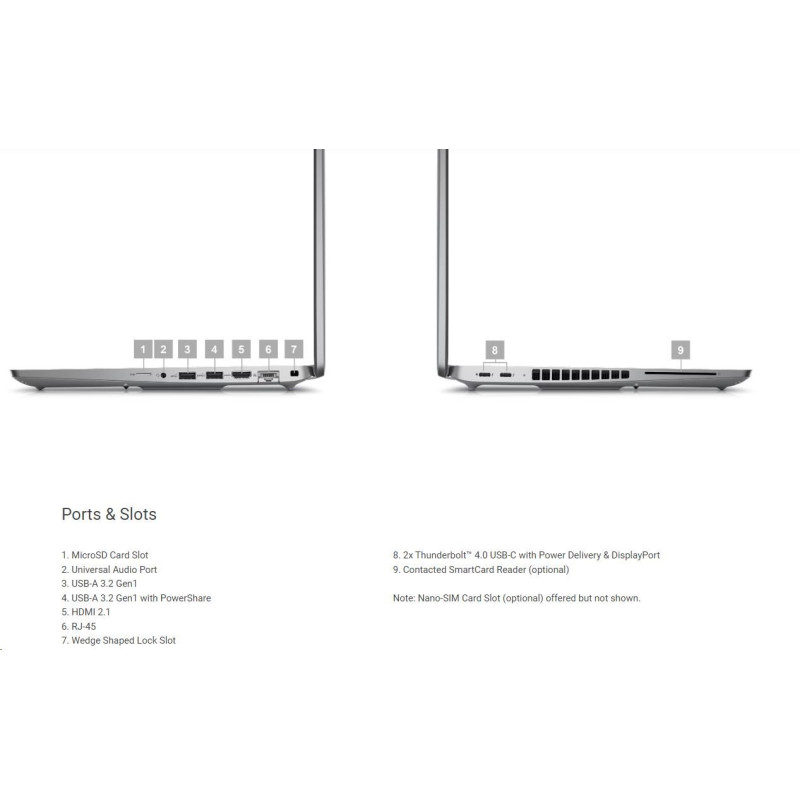 1. MicroSD Card Slot 8. 2x Thunderbolt™ 4.0 USB-C with Power Delivery & DisplayPort 9. Contacted SmartCard Reader |