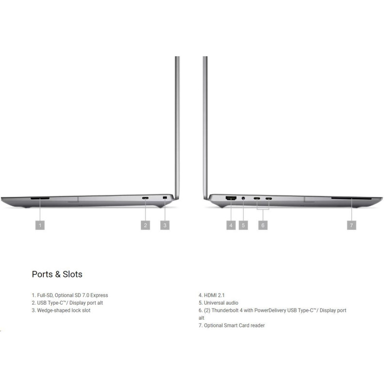 | 1. | Full-SD, Optional SD 7.0 Express USB Type-C™/ Display port alt Wedge-shaped lock slot HDMI 2.1 Universal audio (2) Thunderbolt 4 with PowerDelivery USB Type-C™/ Display port alt Optional Smart Card reader |