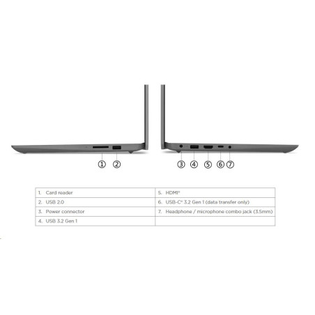 | Standartné porty | 1x USB 2.0 1x USB 3.2 Gen 1 1x USB-C 3.2 Gen 1 (support data transfer only) 1x HDMI 1.4b 1x Card reader 1x Headphone / microphone combo jack (3.5mm) 1x Power connector |