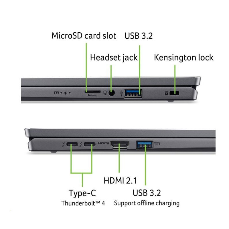 * 2x USB Type-C™: USB4® 40Gbps/Thunderbolt™ 4 (podpora DisplayPort přes USB-C/USB nabíjení 5V; 3A/DC-in port 20V; 100W s podporou USB-C napájení)