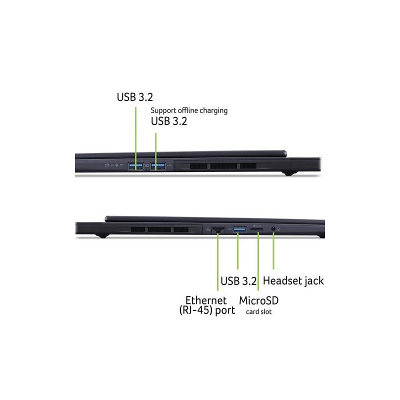 * 1x USB typu C s podporou: USB 3.2 Gen 2 (až 10 Gb/s)/DisplayPort přes USB-C/nabíjení přes USB 5 V; 3 A/DC-in 20 V; 90 W
