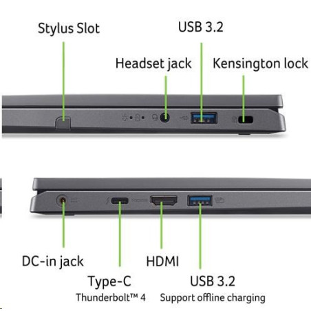 * 2x USB-C s podporou: USB4® 40 Gb/s/DisplayPort přes USB-C/Thunderbolt™ 4/nabíjení přes USB 5 V; 3 A/DC-in 20 V; 65 W