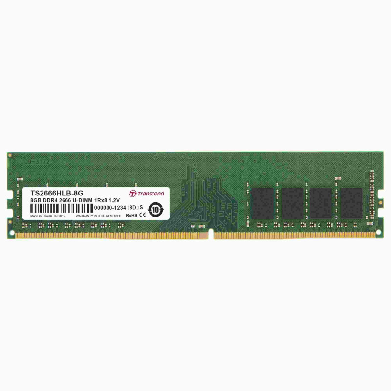 Built to exacting specifications with the finest chips and components available, Transcend DDR4-2666 U-DIMM memory modules undergo rigorous laboratory testing to be fully compatible with Intel Coffee Lake and AMD Ryzen™ processors. Each memory module is rated at 2666MHz to greatly increase data transmission efficiency by higher bandwidth of up to 21GB/s. Operated at a nominal voltage of just 1.2V, Transcend's DDR4-2666 U-DIMM ensures that both operating temperature and electrical load on the memory controller can be reduced in order to save more energy.