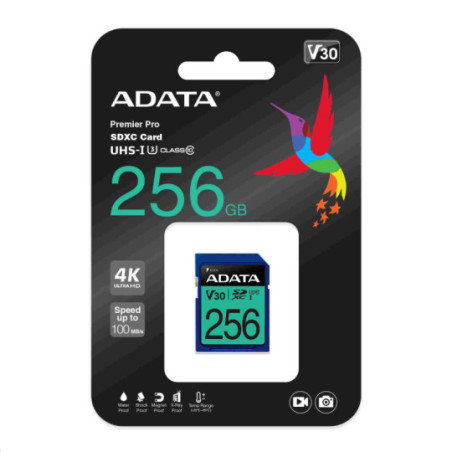 The Premier Pro series of SDXC UHS-I U3 memory cards delivers enhanced performance with read/write speeds up to 100/80MB/s, allowing the capture of high definition images and videos, including burst mode photography. They are V30 (Video Speed Class) qualified and support Ultra HD 4K video recording. Backed by solid multi-point protection, Premier Pro SDXC UHS-I U3 memory cards are the durable and reliable choice of professional photographers and enthusiasts for capturing every fantastic moment with utmost precision.