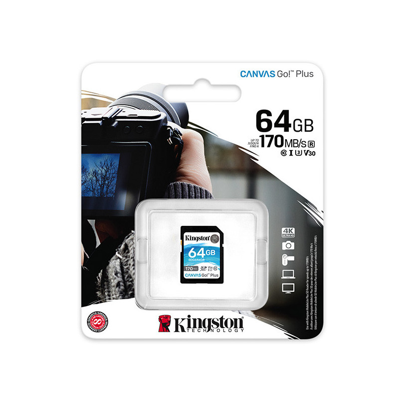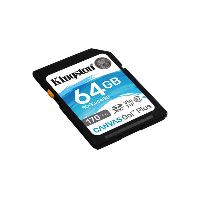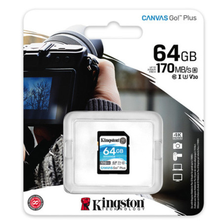 Kingston 64GB SecureDigital Canvas Go! Plus (SDXC) Card, 170R 70W Class 10 UHS-I U3 V30