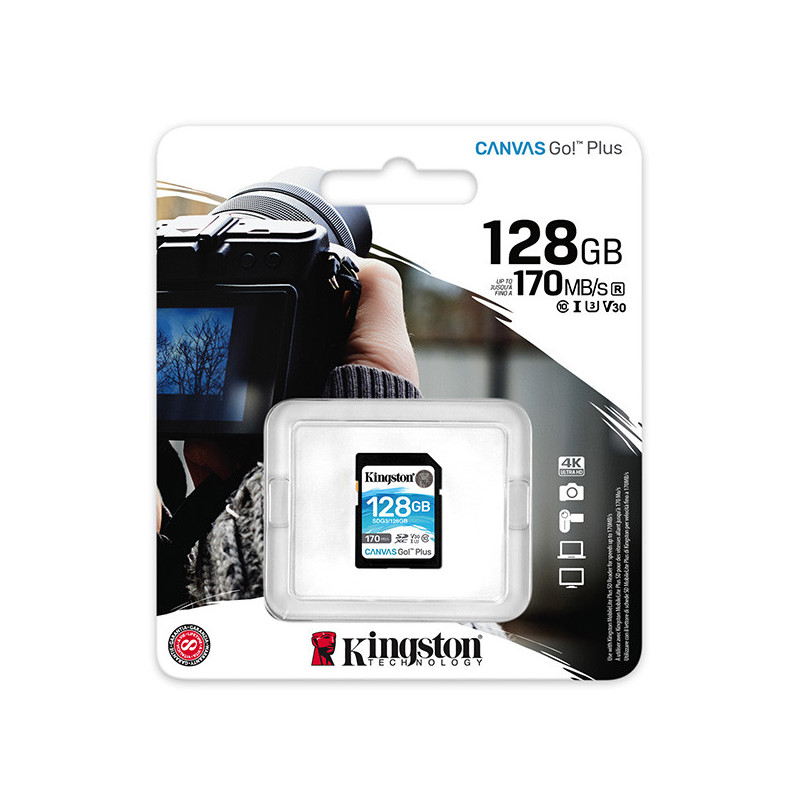 Kingston 128GB SecureDigital Canvas Go! Plus (SDXC) Card, 170R 90W Class 10 UHS-I U3 V30