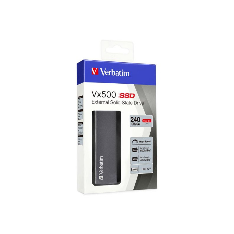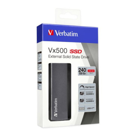 Externí disk SSD Verbatim Vx500 využívá vysokorychlostní flash paměť a řadič USB 3.1 Generation 2, optimalizované tak, aby poskytovaly bezkonkurenční výkon.