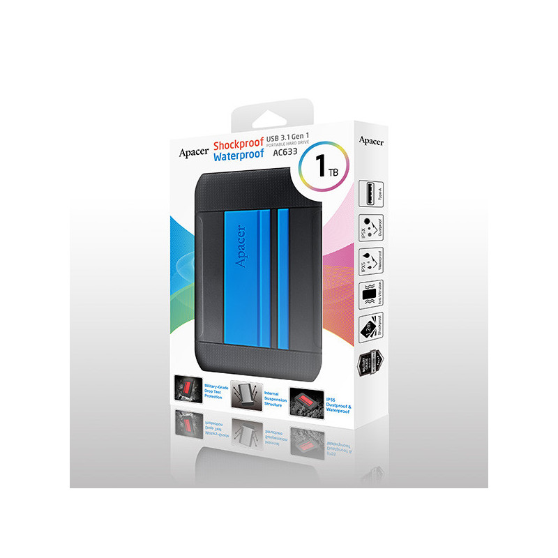 Apacer externí pevný disk, AC633, 2.5", USB 3.0 (3.2 Gen 1), 1TB, AP1TBAC633U-1, modrý, otřesuvzdorný, odolnost proti prach