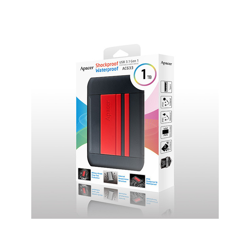 AC633 prošel testovací procedúrou MIL-STD-810G 516.6 IV (Transit Drop Test), což znamená, že při pádu z výšky 1,22 metru nejsou poškozena žádná data.