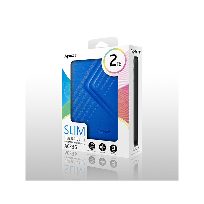 Přenosný pevný disk AC236 USB 3.2 Gen 1 je zcela nový barevný design od společnosti Apacer. Nabízí čtyři barvy a různé kapacity pro každý styl a požadavky na úložiště.