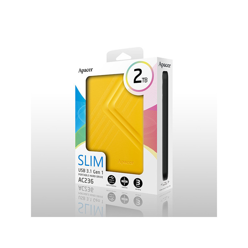 Apacer externí pevný disk, AC236, 2.5", USB 3.0 (3.2 Gen 1), 2TB, AP2TBAC236Y-1, žlutý