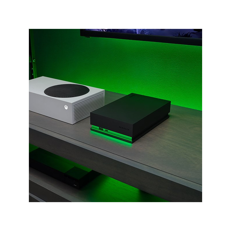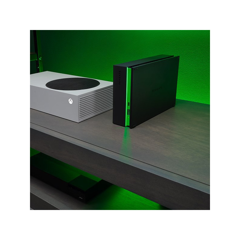 Immerse yourself in the game with Game Drive Hub for Xbox. Build a premium Game Vault with 8TB of storage, while the bold design of the hub complements your whole Xbox gaming station. The built-in LED light bar illuminates your gaming center in Xbox green, while dual front-facing USB-C and USB-A ports keep all your essentials charged and ready to rock.