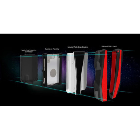 Introducing the world's first durable external hard disk with RGB lighting. With the HD770G, not only can you store all your games and data, but store them with flair. What is more, the HD770G exceeds the IP68 standard meaning it's waterproof and dustproof and is shock-resistant with its robust triple-layer construction. What more could you ask for!