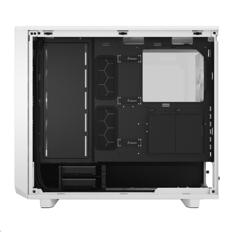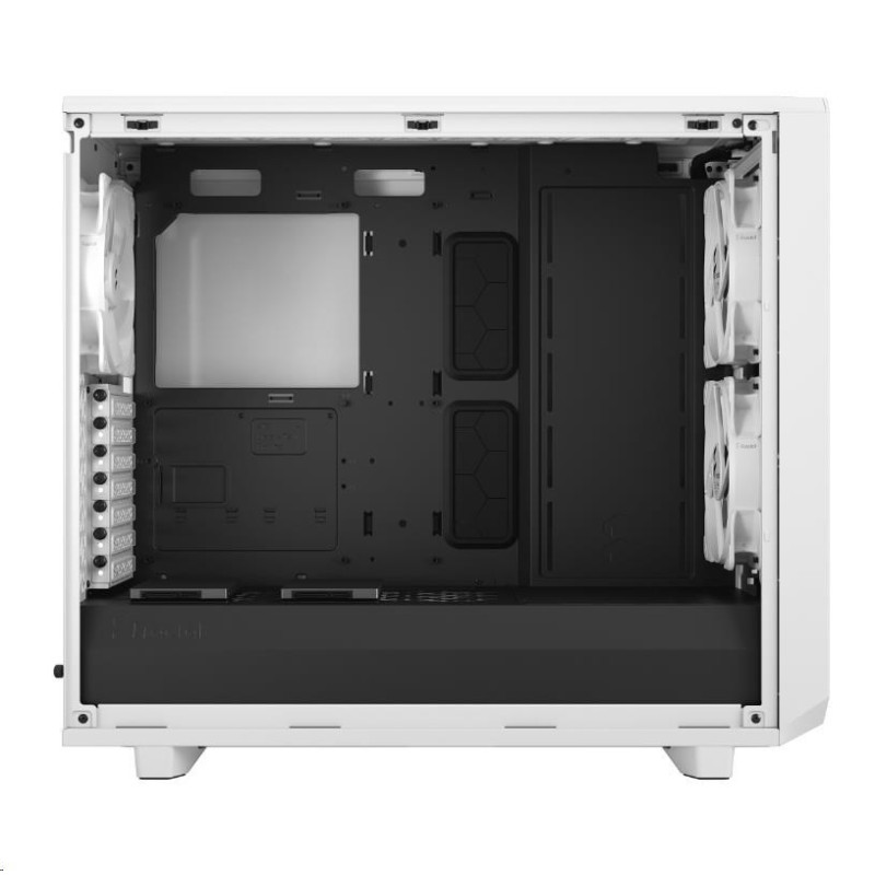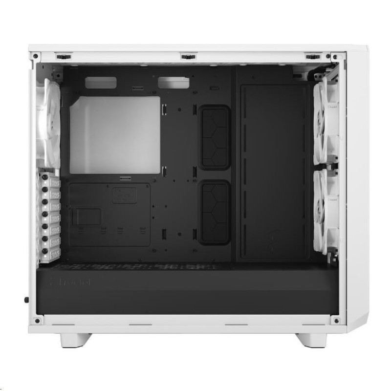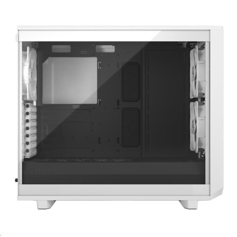 Meshify 2 Lite je vysoce výkonná skříň s odvážným estetickým vzhledem inspirovaným technologií stealth. Jeho nápadný exteriér je vybaven zapuštěným tvrzeným sklem bez šroubů, přední stranou s výklopným ikonickým síťovaným panelem a prostorným interiérem, který podporuje sestavy s více chladiči.