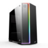 Designová počítačová skříň s instalovaným jedním RGB rainbow LED páskem pod předním panelem. Horní kryt obsahuje přepínač světelných efektů pásku. Levá bočnice je z temperovaného skla, pravá je plná. Horní prachový filtr odnímatelný a je uchycen na magnety.