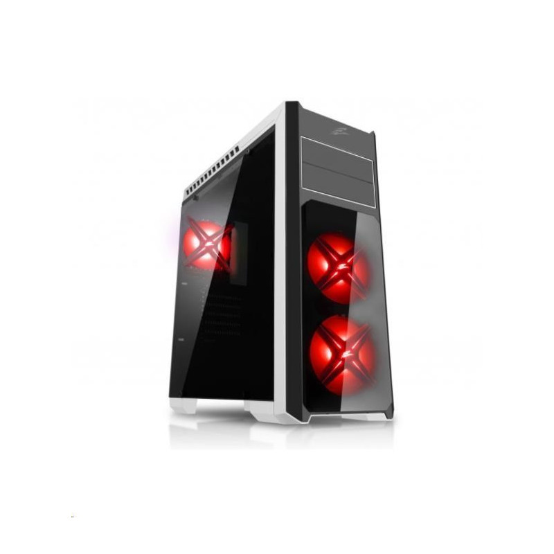 Herní počítačová skříň midi tower ATX, 3 x 120 mm PWM ventilátor, přední strana z tvrzeného skla, průhledná bočnice, bez zdroje, černá