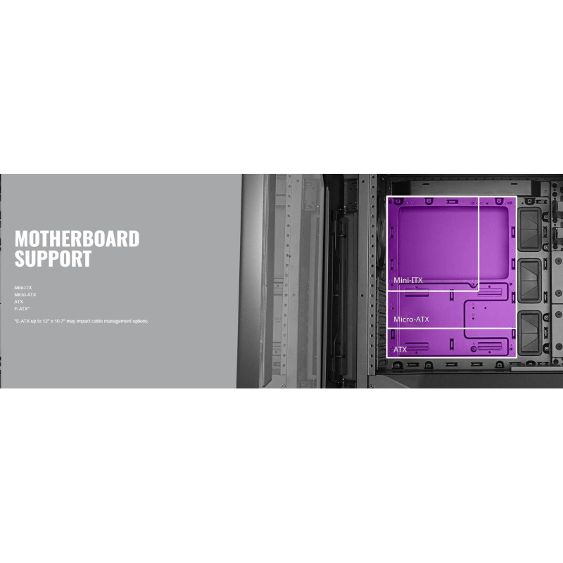 Podporované formáty základních desek: ATX, Extended ATX, Micro-ATX, Mini-ITX