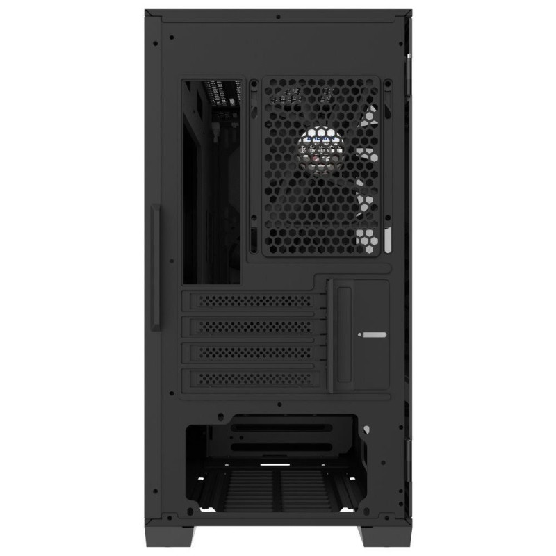Kvalitní počítačová skříň formátu Mini Tower nabízí tři 2,5" pozice a dvě 2,5"/3,5" pozice pro pevné či SSD disky. Předinstalovány jsou tři 120 mm ventilátory. Na horním panelu se nachází dva porty USB 3.0, jeden port USB 2.0, sluchátkový výstup a audio vstup pro mikrofon. Ve skříni je dostatek prostoru pro chladič CPU do výšky až 160 mm a grafickou kartu o délce až 330 mm. Důmyslné řešení umožňuje pohodlné umístění až 280 mm dlouhého výměníku vodního chlazení na přední straně. Skříň je vybavena průhlednou bočnicí. Potěší také přítomnost prachových filtrů. Skříň je dodávána bez zdroje.