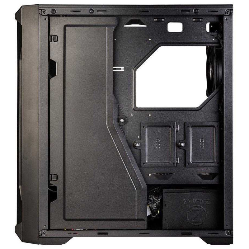 Skříň formátu Middle Tower nabízí čtyři 2,5" pozice pro SSD disky a dvě 3,5" pozice pro pevné disky. Na horním panelu se nachází USB 3.0 port, USB 2.0 port, sluchátkový výstup a audio vstup pro mikrofon. Skříň je vybavena čtyřmi 120 mm ventilátory. Průhledná levá bočnice společně s perforovaným čelním panelem zajišťují vytříbený design. Levá bočnice je navíc otevírací a nabízí tak pohodlný přístup ke komponentám uvnitř skříně. Ve skříni je dostatek prostoru pro chladič CPU do výšky až 160 mm a grafickou kartu o délce až 350 mm. Skříň je dodávána bez zdroje. Součástí balení je sada prachových filtrů.