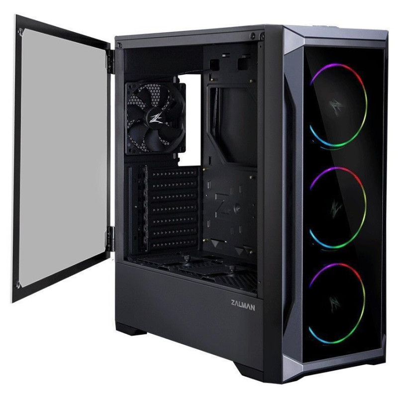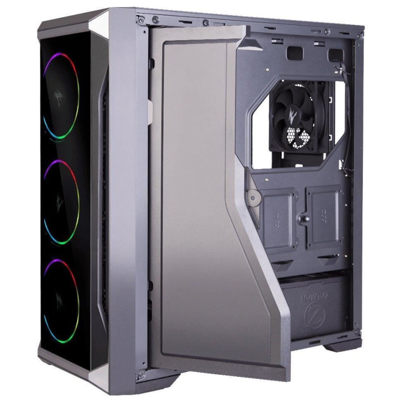 Skříň formátu Middle Tower nabízí čtyři 2,5" pozice pro SSD disky a dvě 3,5" pozice pro pevné disky. Na horním panelu se nachází USB 3.0 port, USB 2.0 port, sluchátkový výstup a audio vstup pro mikrofon. Skříň je vybavena třemi 120 mm ventilátory s adresovatelným RGB podsvícením, které spolu s průhlednou levou bočnicí a čelním panelem zajišťují vytříbený design. Levá bočnice je navíc otevírací a nabízí tak pohodlný přístup ke komponentám uvnitř skříně. Dostatečnému proudění vzduchu napomáhá také jeden 120 mm ventilátor instalovaný na zadní straně skříně. Ve skříni je dostatek prostoru pro chladič CPU do výšky až 160 mm a grafickou kartu o délce až 350 mm. Skříň je dodávána bez zdroje. Součástí balení je sada prachových filtrů a ARGB ovladač.