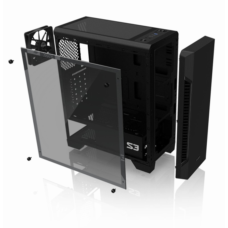 Provedení skříně:Midi Tower; Výkon zdroje (ve W):0; Vybavení PC skříně:Bez integrovaného zdroje, Přední Audio panel, Přední USB panel, Průhledná bočnice; Barva skříně:Černá; Počet pozic 2.5" (SSD):2; Počet pozic 3.5" (HDD):2