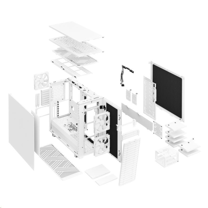 Speciální vybavení: Cable management, Neprůhledná bočnice, Prachové filtry