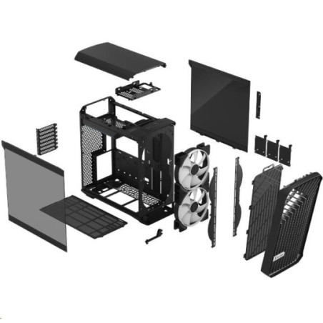 Pozice pro ventilátory: Přední 3x120/2x140/180mm, Spodní 3x120mm/2x140/180mm, Zadní 1x120mm