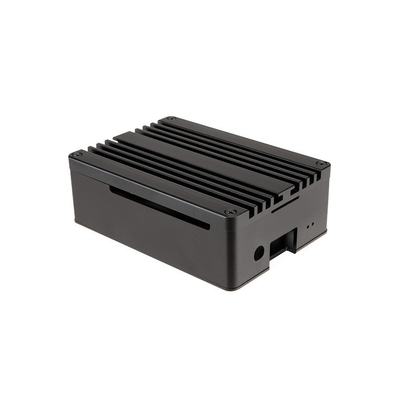 Krásně vytvořené hliníkové pouzdro. Tepelná souprava s vrchním krytem chladiče chladí a chrání Raspberry Pi 4. Plná podpora I/O.
