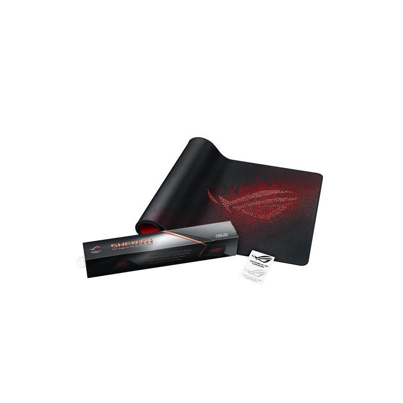 The extra-large ASUS ROG Sheath mouse pad is optimized for all gaming mouse types, with a smooth surface that perfectly ensures pixel-precise tracking for unmatched command and control. ROG Sheath is designed for your comfort and features a non-slip ROG-red rubber base that keeps it in place and stitched edges that resist fraying.
