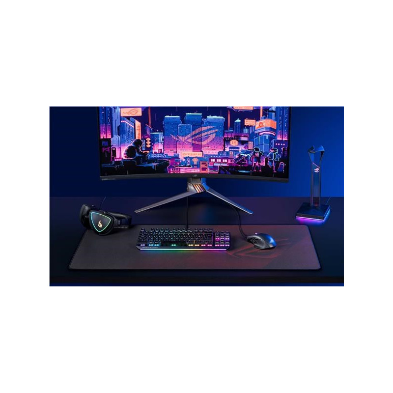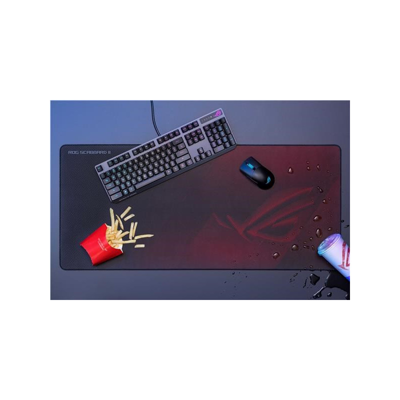 ROG Scabbard II extended gaming mouse pad with protective nano coating for a water-, oil-and dust-repellant surface, with anti-fray, flat-stitched edges and a non-slip rubber base