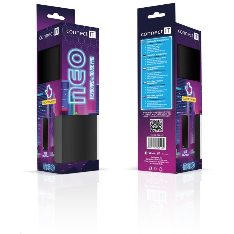 Na kvalitní a stylové podložce CONNECT IT NEO se projeví pozitivní vlastnosti vaší myši. Moderní materiál, ze kterého je podložka vyrobena, poskytuje myši dobře snímatelný podklad i pro nejjemnější laserové snímání. Dvouvrstvý materiál kombinující protiskluznost na spodní straně a ideální vlastnosti pro myši na vrchní straně se výraznou měrou zaslouží o ideální poměr mezi kontrolou nad myší a skluzem.