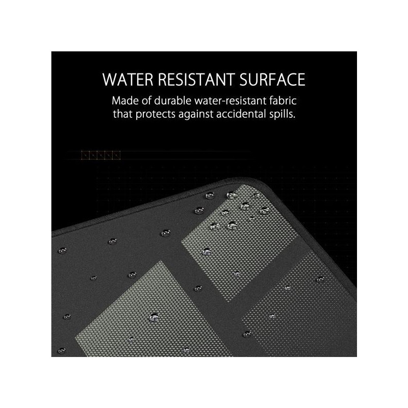 Portable gaming mouse pad with nano-coated, water-resistant surface, durable anti-fray stitching, and non-slip rubber base