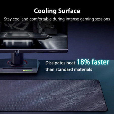ROG Sheath II XXL je velká herní podložka pod myš s pokročilou chladicí tkaninou a plochými šitými okraji proti oděru a protiskluzovou gumovou základnou
