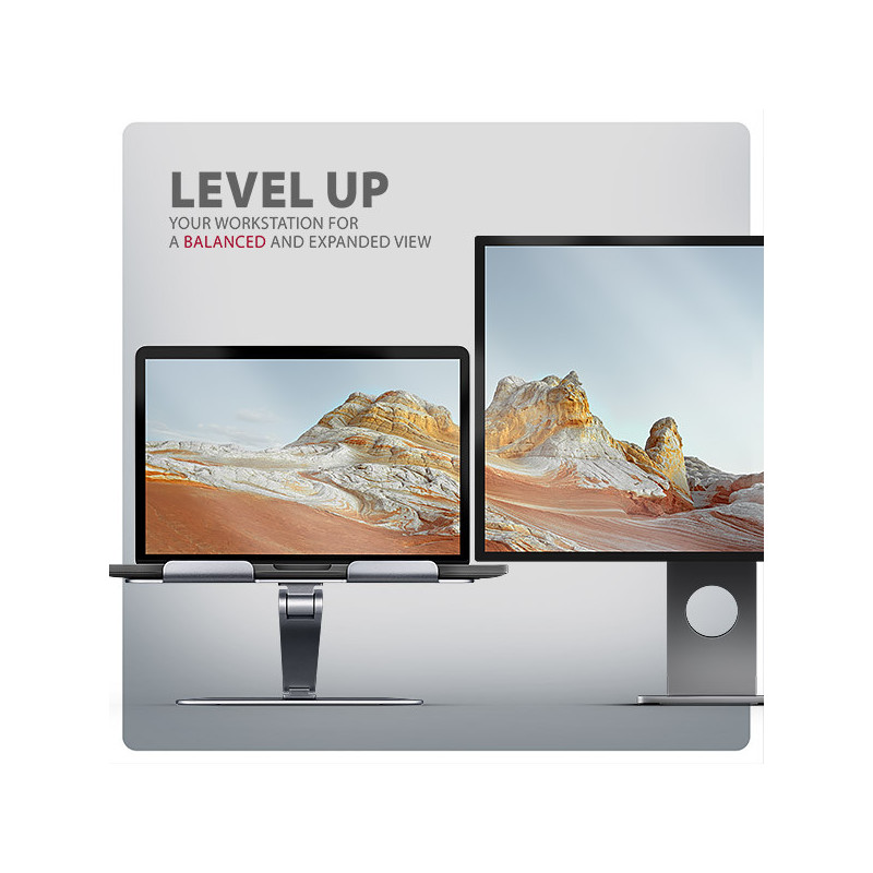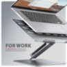 Velkou výhodou je chytré řešení s dvojitým kloubem, které umožňuje plynulé nastavení výšky obrazovky notebooku tak, aby byl v jedné rovině s vaším externím monitorem. Tím získáte další pracovní plochu ve správné úrovni očí, což výrazně zlepšuje ergonomii a pohodlí při práci, a zároveň zvyšuje vaši produktivitu.