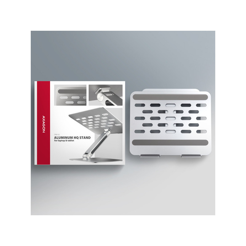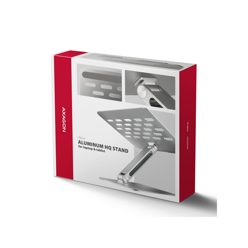 AXAGON STND-LQ je stojan s dvěma klouby pod notebook či tablet, který zajišťuje pohodlí a zlepšuje ergonomii při práci. Tento stojan je ideální pro zařízení od 10" do 16". Kloubový mechanismus umožňuje nastavit libovolnou kombinaci výšky a úhlu. Snadno tak najdete ideální sklon stojanu pro maximální uvolnění vašich krčních a zádových svalů. Užijte si komfortní pracovní prostředí s kompaktním a přenosným stojanem, který se dokonale přizpůsobí vašim potřebám, ať už pracujete doma, v kanceláři, nebo na cestách.