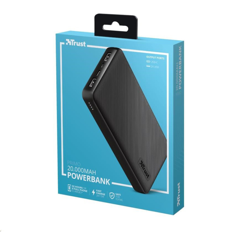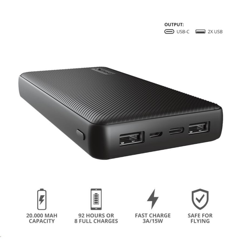 Fast and high-capacity powerbank for up to 92 extra device hours (20.000 mAh)