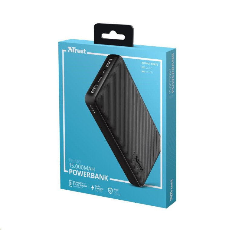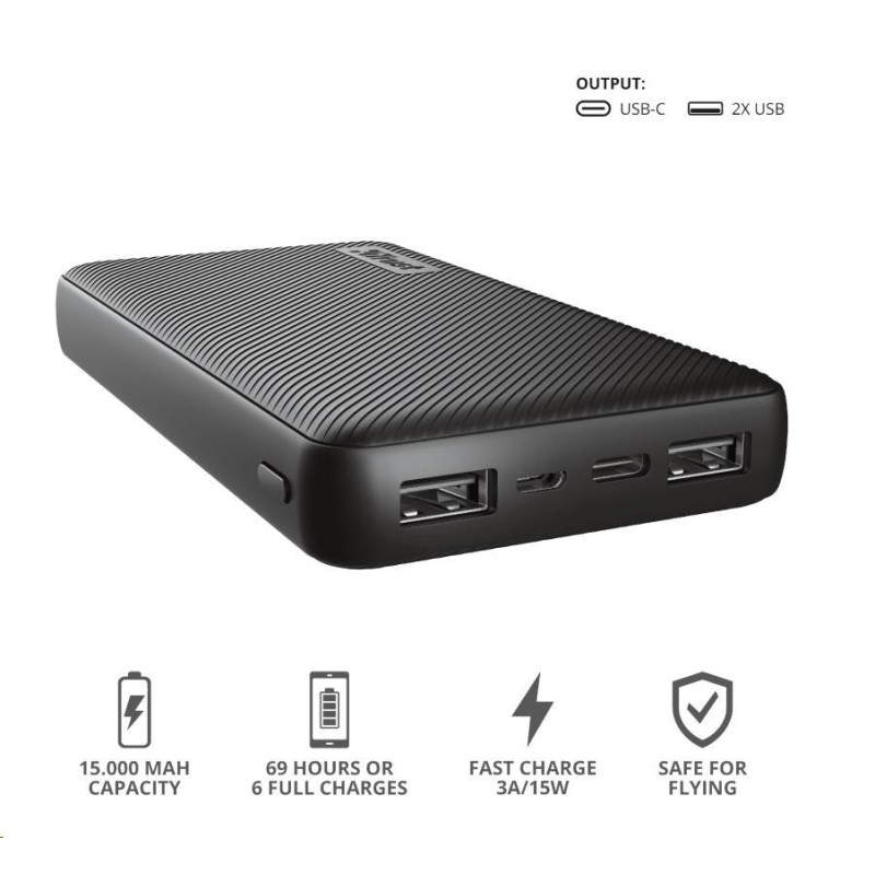 Fast and high-capacity powerbank in compact design (15.000 mAh)