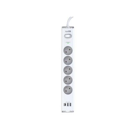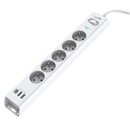 Praktická a stylová přepěťová ochrana pro vaše zařízení. Ideální do kanceláře, domova či jiných míst, kde je potřeba chránit elektroniku před náhlými výkyvy napětí. S 5 zásuvkami a třemi USB porty poskytuje pohodlné napájení více zařízení současně. Další výhodou této přepěťové ochrany je, že má montážní otvory pro instalaci třeba na stěnu, takže se Vám již nebude plést pod nohami. Zapnutí ovládáte pomocí tlačítka ON/OFF a bezpečnostní ochranu poznáte díky zelenému indikátoru. Prodlužovací kabel v délce 1,5m vyniká 250V napětím a maximálním zatížením 3680W.