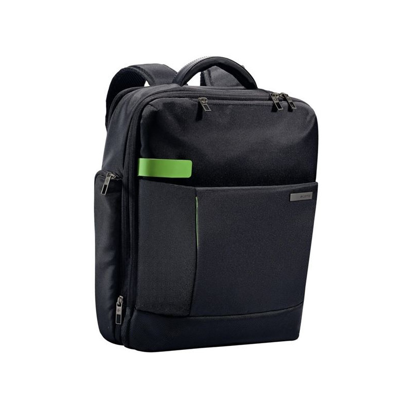 Kvalitní, lehký, prostorný a rozšiřitelný batoh s dvěmi hlavními a jednou menší přední kapsou. Výrazný a elegantní design doplňují kvalitní zipy a stylové matně kovové přezky. Černý povrch s kontrastním zeleným vnitřkem, pro snažší hledání předmětů. Batoh nabízí místo pro všechny Vaše mobilní zařízení, 15,6" laptop a dokumenty do formátu A4. Lze pohodlně nosit díky polstrované rukojeti z pravé kůže, nastavitelným ramenním popruhům a přezce na hrudi. Batoh lze také upevnit na madlo pojízdného kufru.