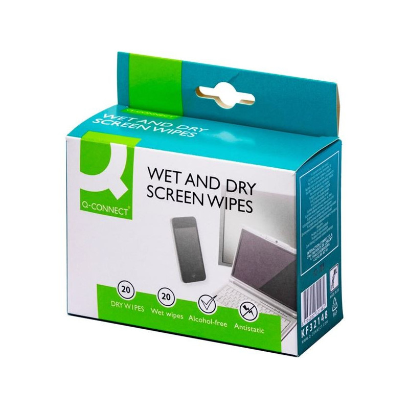 Mokré a suché čisticí ubrousky pro notebooky, LCD, TFT a plazmové obrazovky *Ubrousky jsou antistatické, bez obsahu alkoholu, nehořlavé *Balení obsahuje 20 párů ubrousků