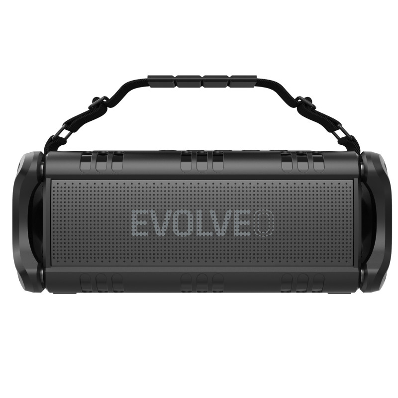 EVOLVEO Armor POWER 6 přenosný bezdrátový reproduktor s ohromujícím výkonem a dlouhou výdrží. Reproduktor je vybavený čtyřmi aktivními reproduktory a dvěma pasivními subwoofery o celkovém maximálním výkonu 60W a baterií o kapacitě 8 000mAH.