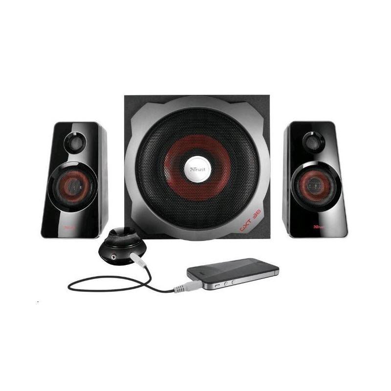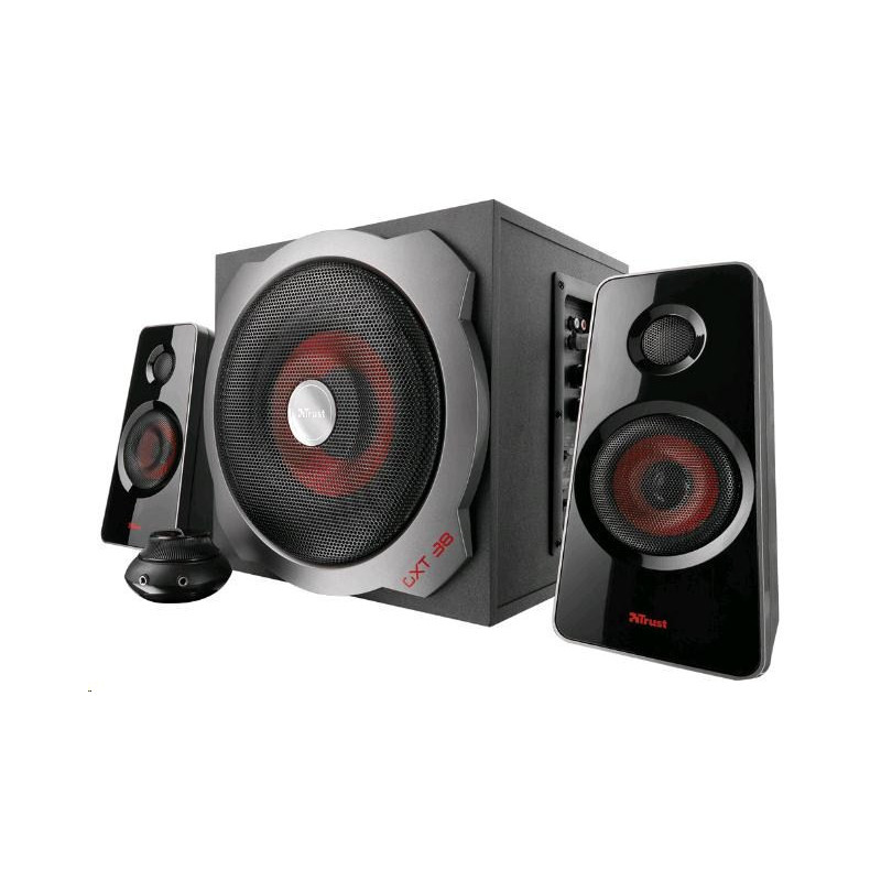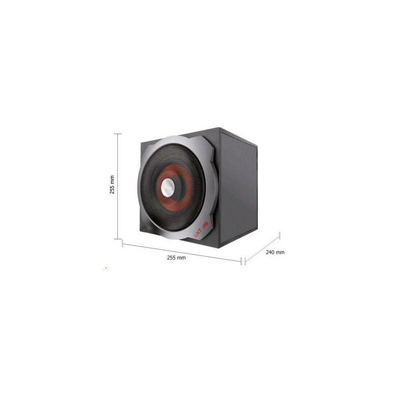 Systém GXT 38 dosahuje maximálního výkonu 120 W, což stačí na vytvoření „zvukové stěny“. Součástí sady je velký dřevěný subwoofer se 7palcovým reproduktorem, který vytváří mocné basy, které doslova cítíte. Satelitní reproduktory produkují zvuk optimální kvality ve středním a vysokém pásmu. Ovladačem na boku subwooferu můžete samostatně upravit míru basů a připravit si tak zvuk podle svých představ.