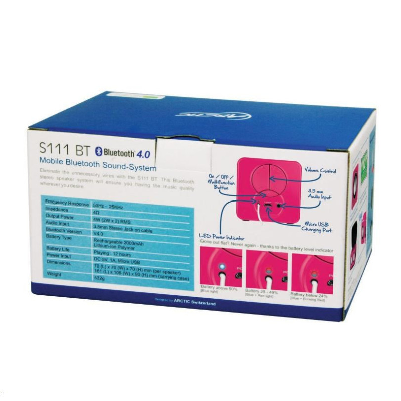 ARCTIC mobilní bluetooth reproduktory - S111 BT - růžové