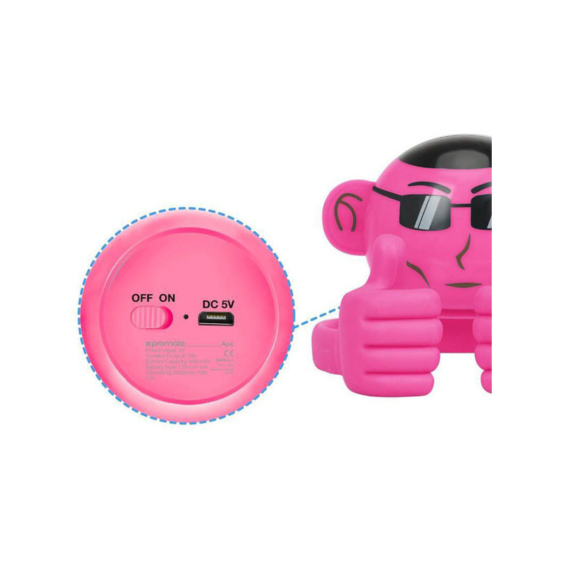 Stylový a multifunkční bezdrátový reproduktor pro děti Promate Ape je dostatečně kompaktní a přitom hlasitý. Díky technologii Bluetooth umožňuje bezdrátové připojení k zařízení až do vzdálenosti 10 metrů. Reproduktor navíc nabízí i držák telefonu. Jednoduše tak může Vaše dítě umístit telefon do rukou zařízení a dívat se třeba na film. Vytvoří si tak vlastní domácí kino.