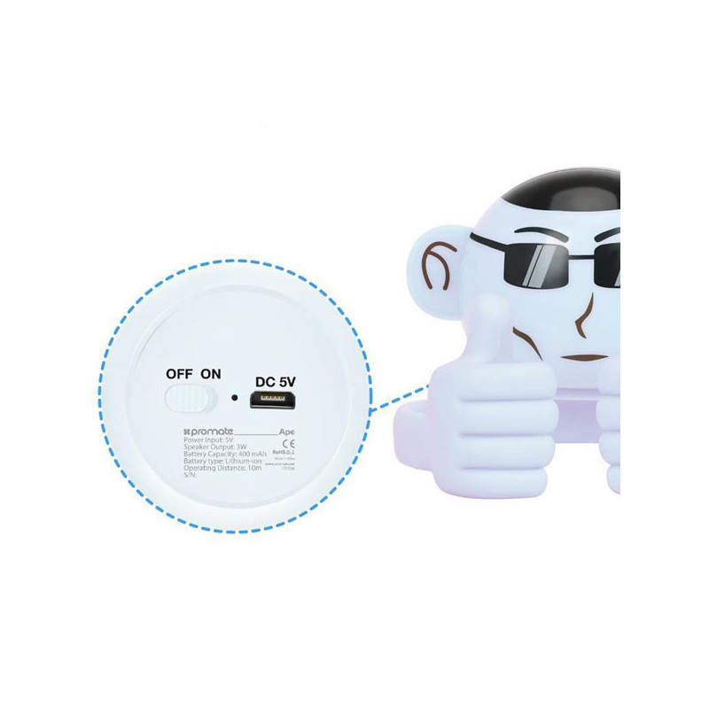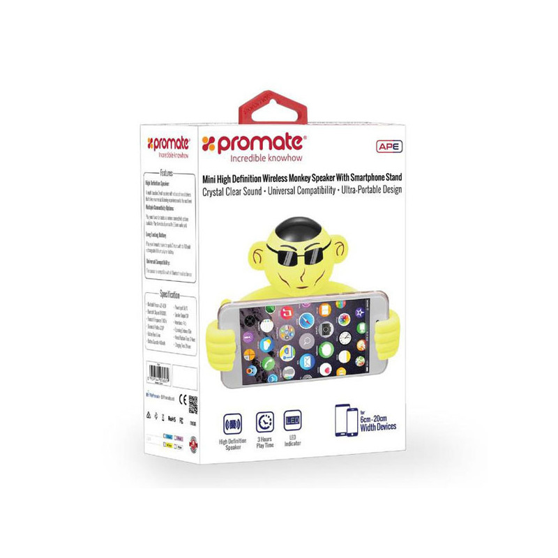 Stylový a multifunkční bezdrátový reproduktor pro děti Promate Ape je dostatečně kompaktní a přitom hlasitý. Díky technologii Bluetooth umožňuje bezdrátové připojení k zařízení až do vzdálenosti 10 metrů. Reproduktor navíc nabízí i držák telefonu. Jednoduše tak může Vaše dítě umístit telefon do rukou zařízení a dívat se třeba na film. Vytvoří si tak vlastní domácí kino.