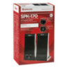 Reproduktory SPK-170 se díky svému tvaru skvěle hodí k plochým obrazovkám a televizím. Disponují magnetickým stíněním, které zajistí, že magnetické pole, jež reproduktory běžně vyzařují, nezpůsobí rušení ostatních zařízení. Reproduktory samozřejmě nabízí dobré ozvučení s možností ovládání hlasitosti přímo na reproduktoru, kde naleznete také tlačítko zapnutí i nepostradatelnou možnost zapojit do reproduktoru sluchátka.